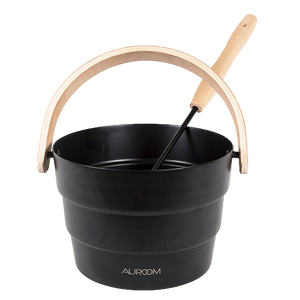 The Auroom 1.5 Gallon Sauna Bucket & Ladle sports a unique Finnish design. Made from lightweight aluminum with wooden handles, this must-have sauna accessory is essential for comfort and convenience.