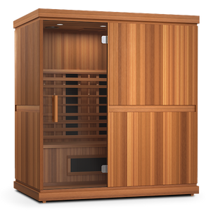 Finnmark Designs is the only infrared sauna manufacturer that combine long-wave carbon 360 infrared panels with UL listed short-wave Spectrum Plus™ infrared panels. This combination provides higher temperatures, full body coverage, deeper penetration, and an experience better than any other sauna. Each heater is strategically placed to offer the highest level of therapy possible. Achieve temperatures of 170° in less than 1 hour on a standard home outlet, an engineering marvel!