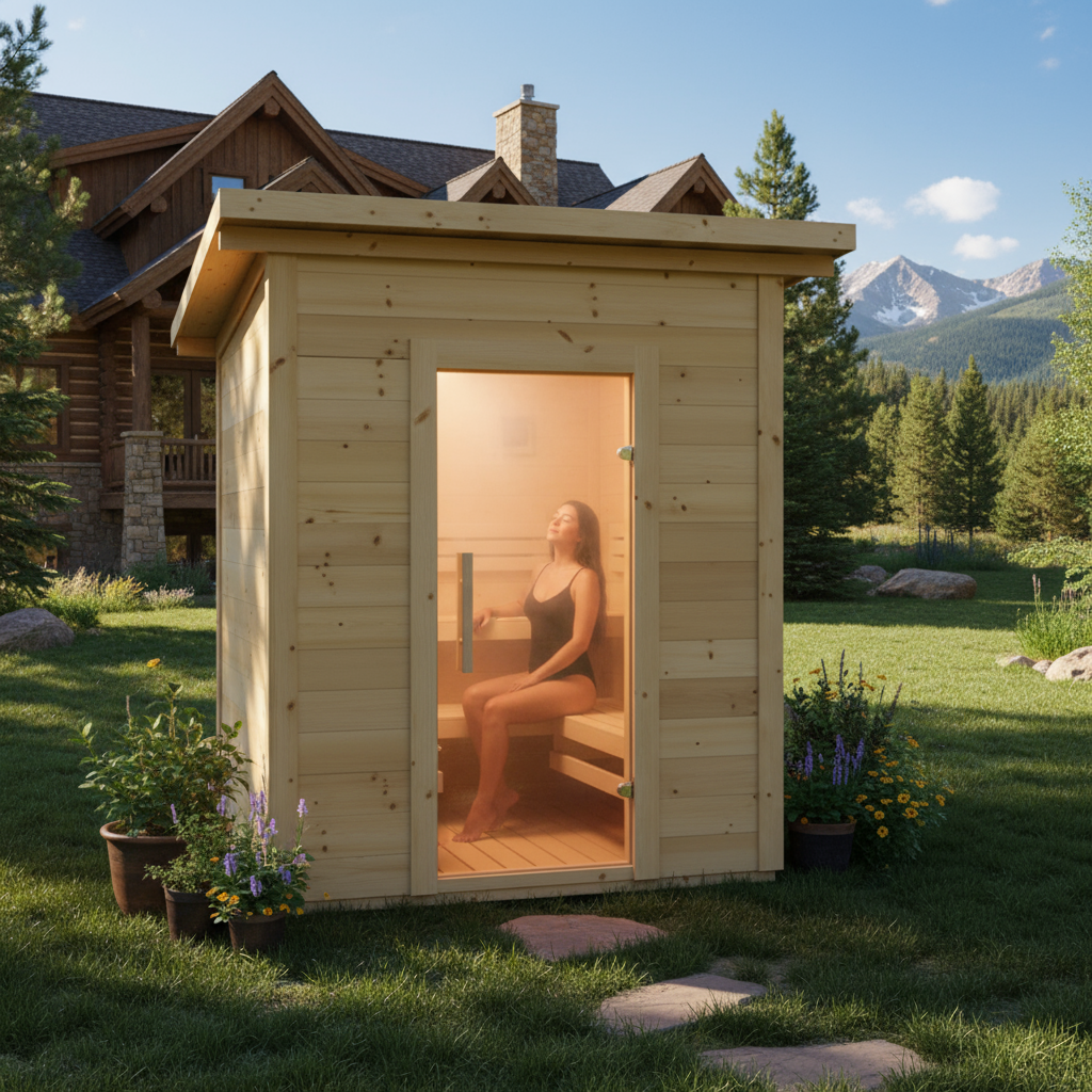 This luxurious 4-person backyard sauna can elevate your daily health regimen and provide a lifetime of wellness and relaxation for the whole family.