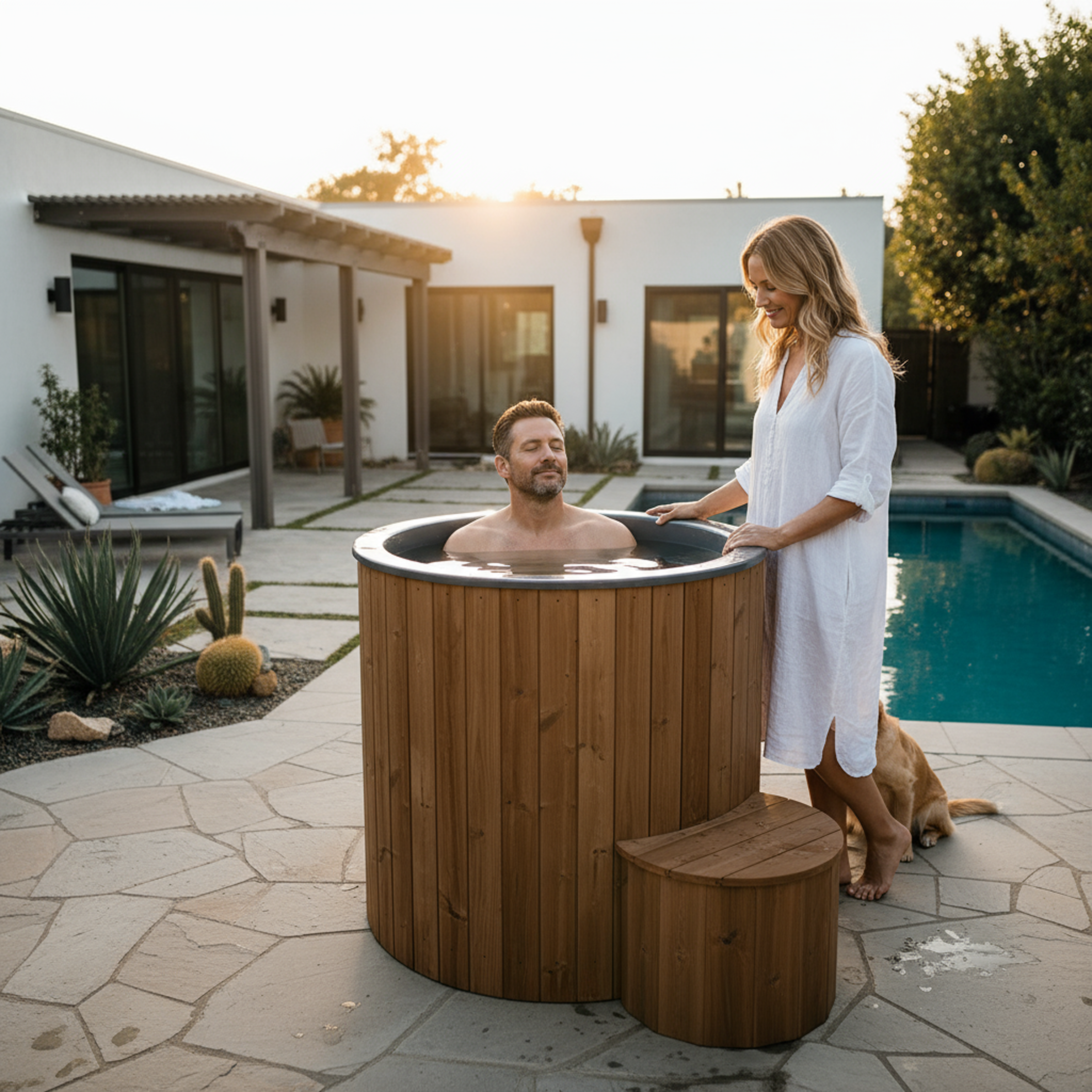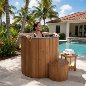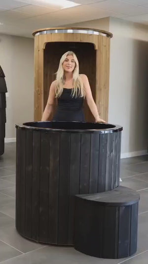 Take your workout recovery to a professional level with a SaunaLife Model S1N Hot & Cold immersion tub. Also available with elegant black exterior wood finish. Arrives fully assembled!